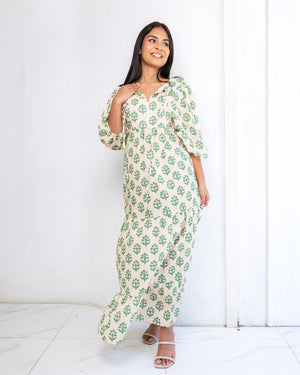 April Maxi Dress - Green Printed