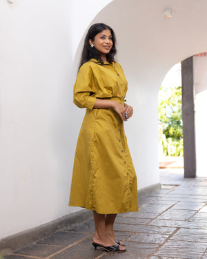 Oprah Cotton Midi Dress/ Trench Coat - Olive