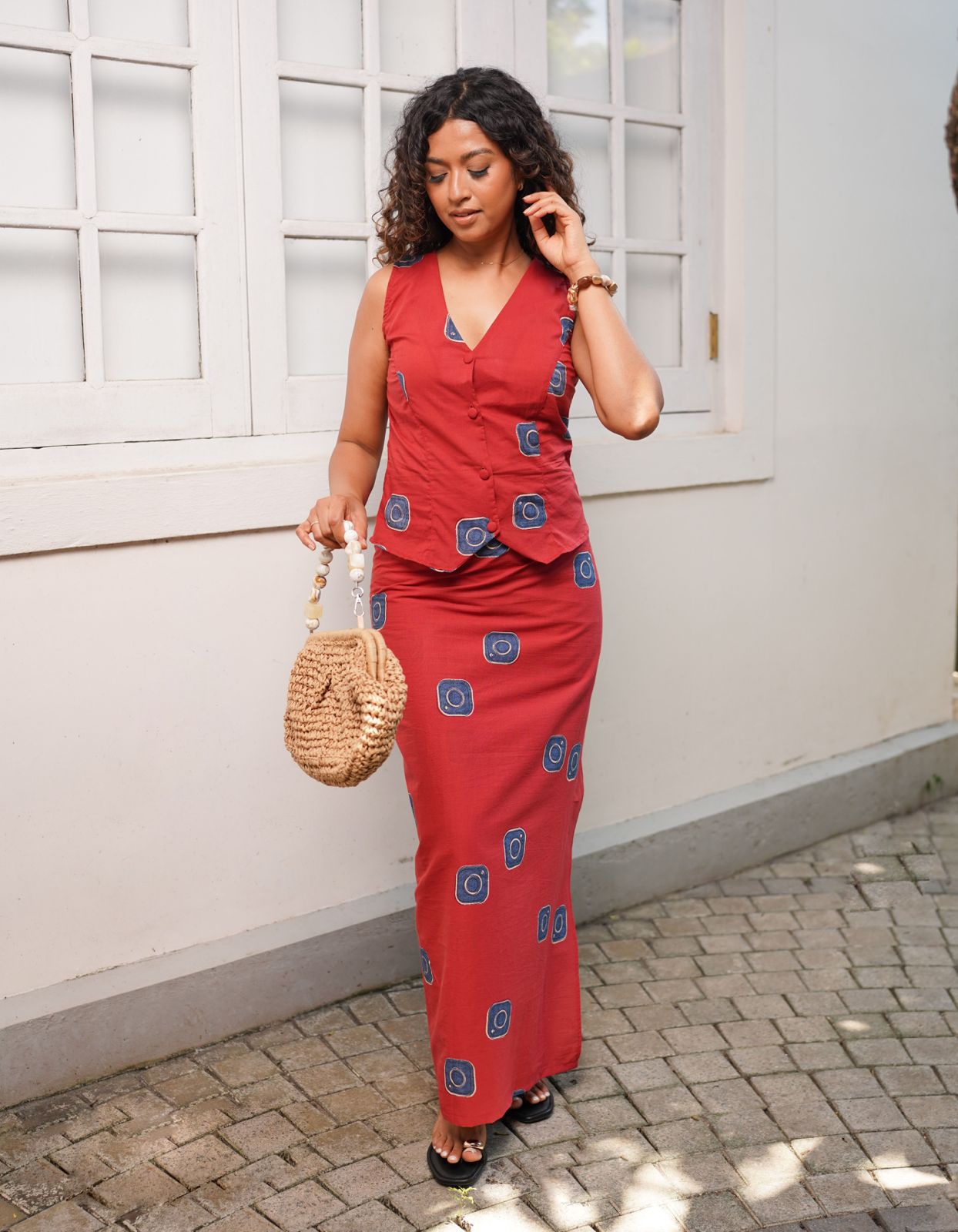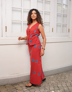 Shuba Abstract Printed Top - Brick Red